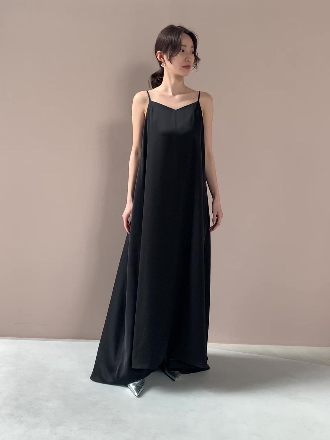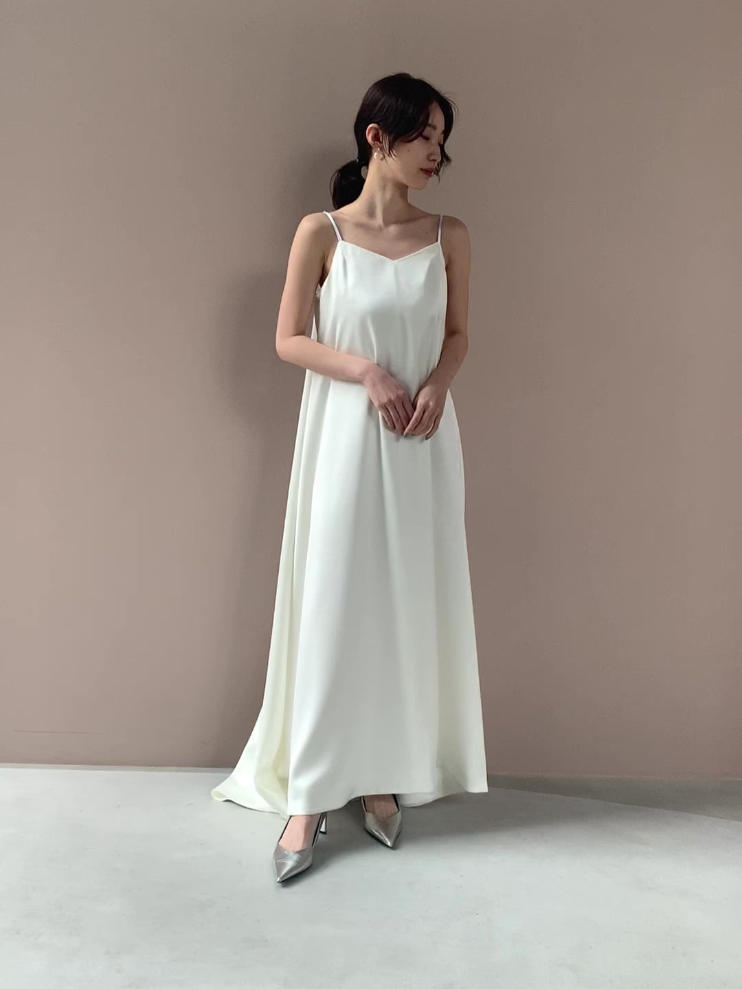 上品な光沢感のサテンと繊細なドットを組み合わせた、キャミソールドレス。